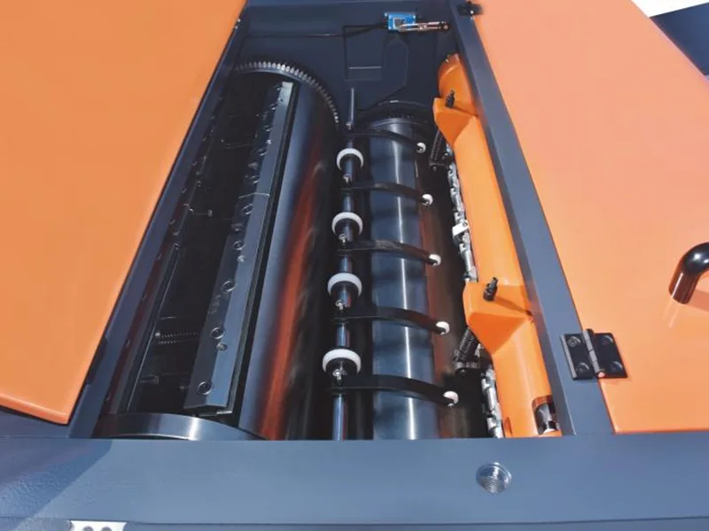 - Үлкен диаметрлі таңбалы барабанды, динамикалық теңгерімдегі барабанды, майлы қабықшаны тегіс жабу. Қос білікті майды тасымалдау, қырғыш, майды қарапайым және сенімді басқару.